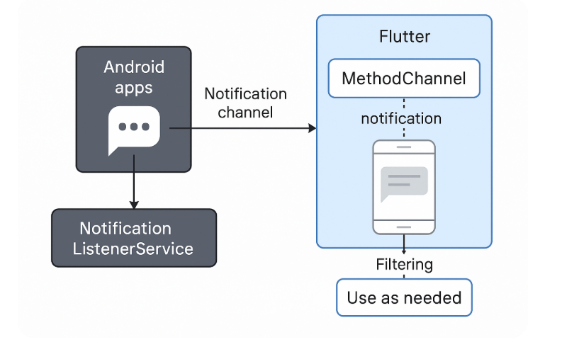 이 글은 이화여자대학교 캡스톤 디자인과 창업프로젝트 - 그로쓰 중 팀의 프론트엔드 팀원으로서 내가 담당한 기술적 부분에 대해 다루는 글이다. 글의 주제는, flutter 앱에서 사용자의 결제내역 문자/어플 알림 읽어오기 및 파싱하는 방법 이다.우리 팀의 주제는 "예산 내 소비에 어려움을 겪는Z세대를 위한 시계열 예측 AI 기반맞춤형 절약 챌린지 가계부서비스 " 이다.가계부의 필수 기능인 사용자의 소비 내역 추적 및 관리를 위해서는, 사용자의 휴대폰으로 온 알림 중 카드사에서 보낸 결제내역 문자 및 은행 어플에서 보낸 결제내역 알림을 읽어오는 기능이 필수적이다. 뿐만 아니라, 결제내역을 api로 전송하려면 읽어온 문자/알림에서 우리가 원하는 필드를 추출하는 것 또한 필요하다. 글의 전개는 다음과 같다.1..
