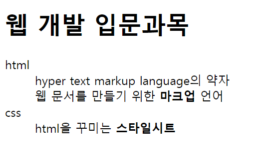 <dd>웹 문서를 만들기 위한 <strong>마크업</strong> 언어</dd>