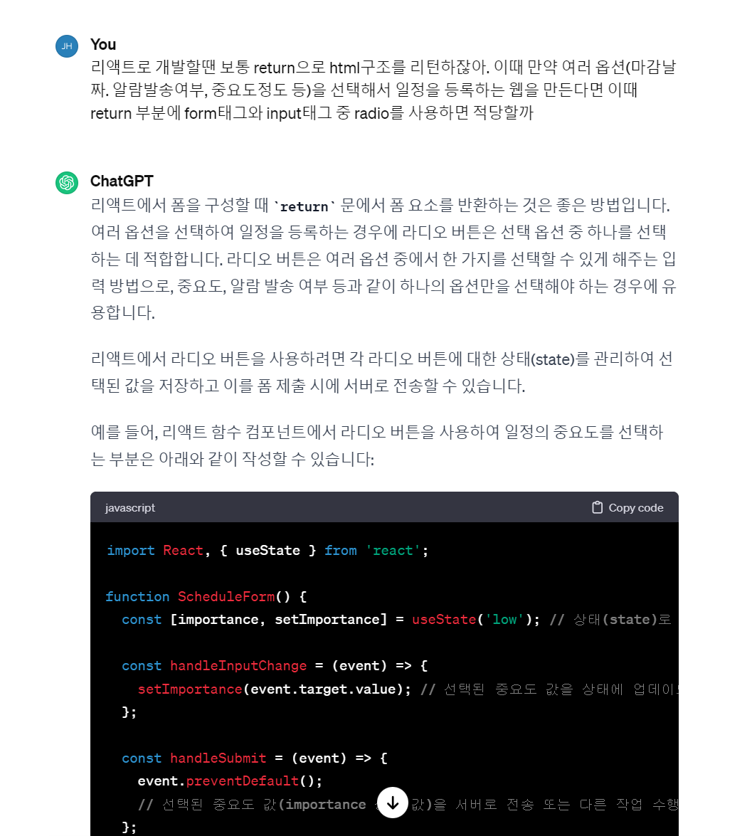 3)폼 데이터로 전송될 값 설정: 사용자가 선택한 값을 폼 데이터로 전송할 때 해당 값으로 사용됩니다.