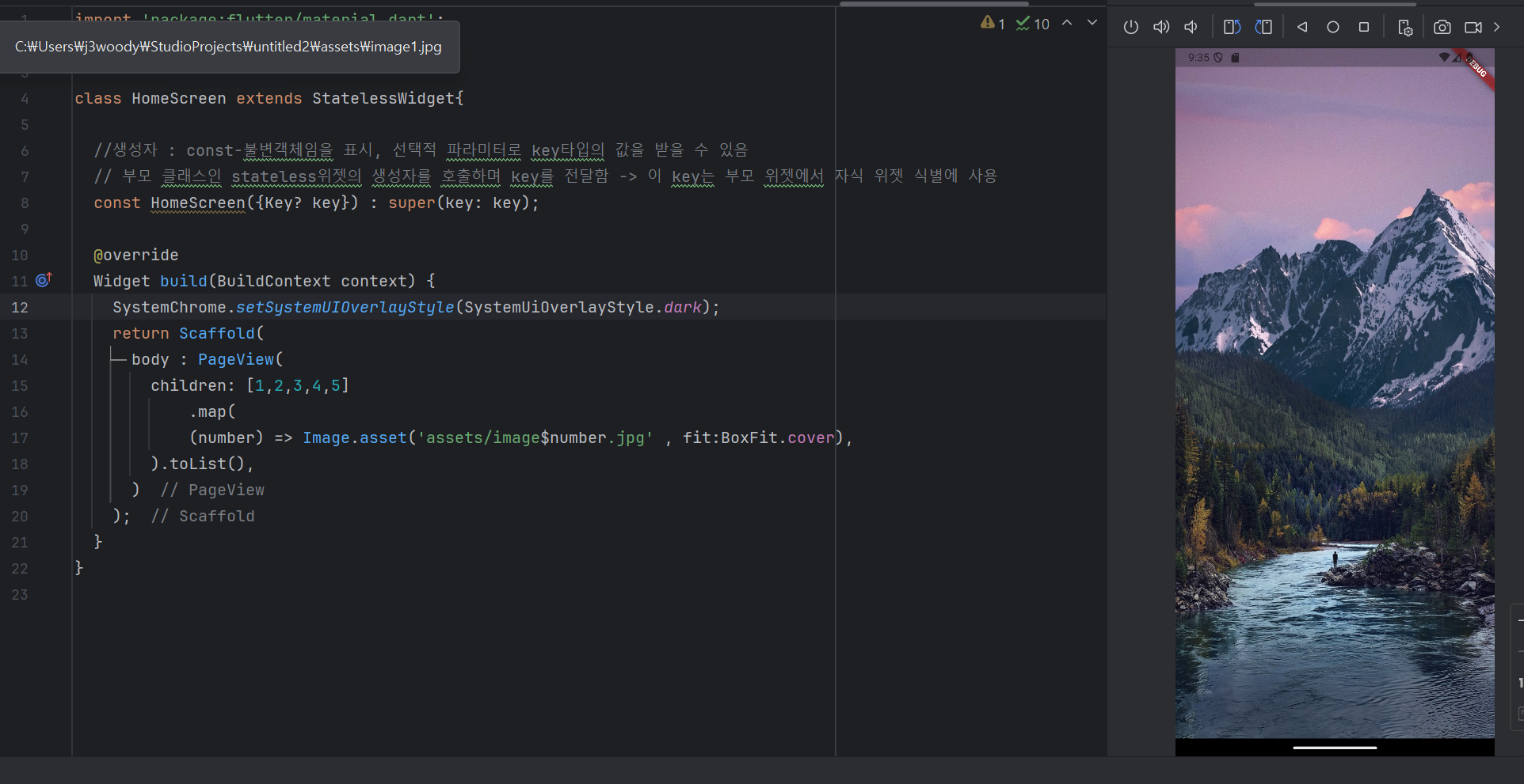 - 이제 PageView 위젯도 홈스크린에 등록 (페이지뷰 위젯은 머러리얼 패키지에서 기본제공)