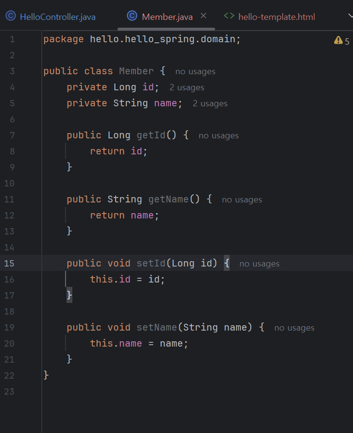 먼저 위의 위치에 domain 패키지,member클래스를 만든다