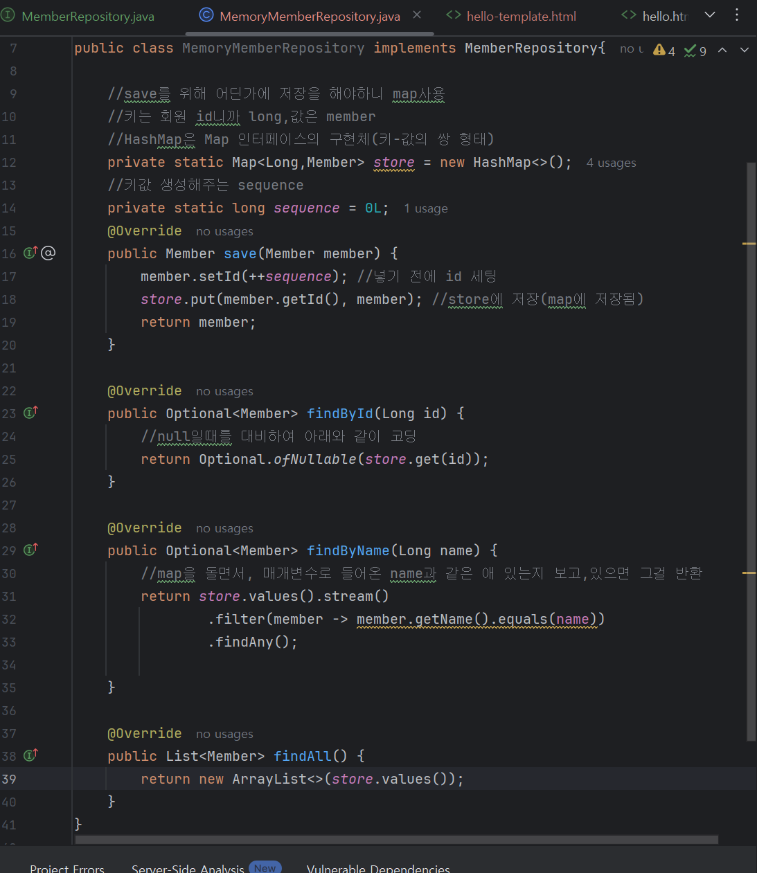 MemoryMemberRepository에 위와 같은 코드를 추가한 후