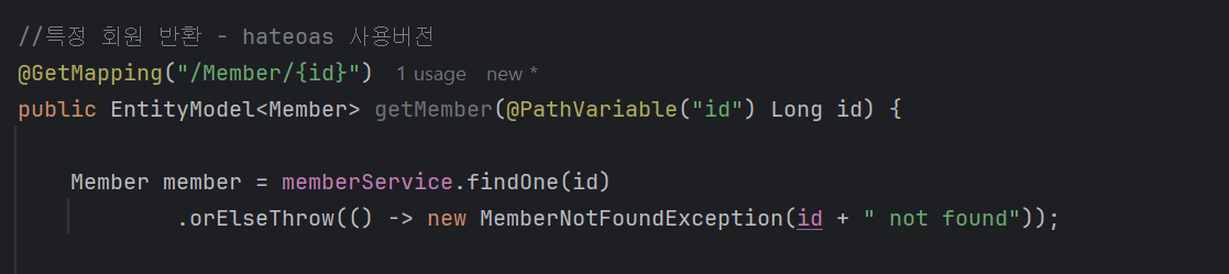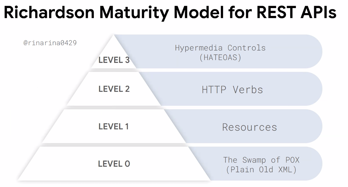 HATEOAS : 응답과 관련된 링크들을 함께 주는 것 (속성과 링크(href) 제공) -> 클라는 특정 요청에 대한 응답에서 필요한 추가정보를 링크로 제공받음 -> 서버-클라 간 의존성 낮추게 해줌