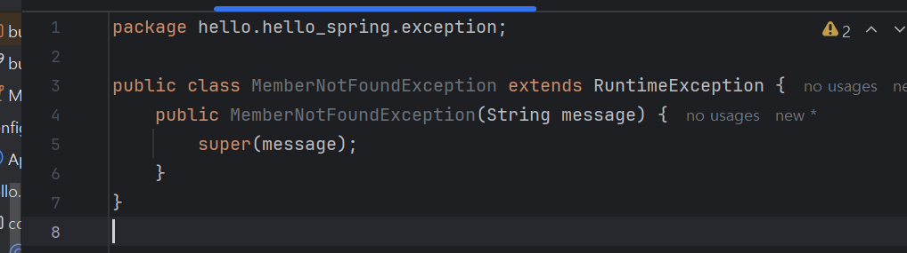 이렇게 커스텀 예외 클래스를 만들어준 후 ,
