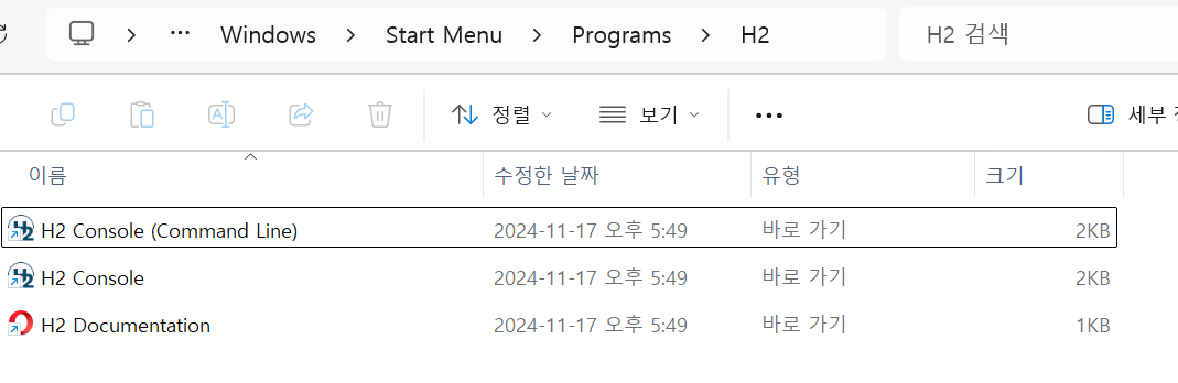 그전에 먼저 H2 데이터베이스를 먼저 설치해보자